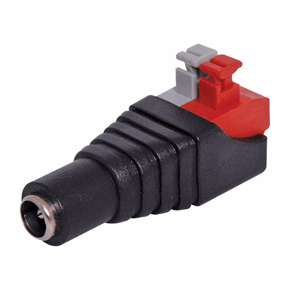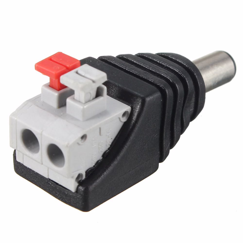 2.1mm Push On Power Connector range rom from Tiger Power are fast fit connectors consisting of a plug and socket. The industry standard size of 2.1mm is the most common DC power connector type in the industry. To use, just strip the wires, push the top level down and insert the cable. Once the lever is released the cable is locked in place