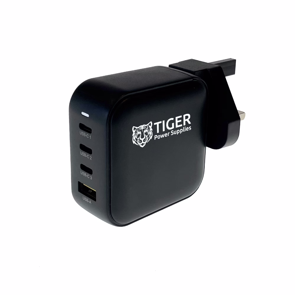 USB C Charger UK 100W 4 Port from Tiger Power is a multi port USB Charger power supply featuring advanced 5 stage PD power delivery. Part of our range of multi port USB chargers. The unit has 3 USB type C ports and a single USB A port. It is manufactured for demanding commercial and industrial applications but simultaneously suitable for use in domestic environments. Supplied by one of the UKs leading providers of power supply products