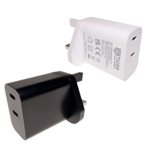 UK 20W Charger 2 Port with Power Delivery (PD) (25 Watt Peak with 2 x USB C ports)