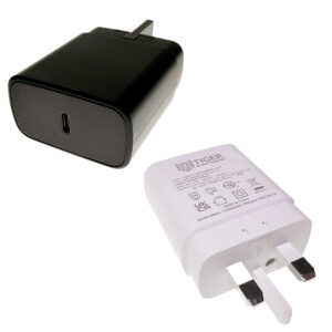 Tiger Power offers a comprehensive range of USB power supplies. We stock the latest single and multi port USB C chargers as well as the more traditional type A chargers. Our units are available as either fixed AC pin and Interchangeable AC pin options for World use. All of our USB power supplies meet latest 62368-1 safety standards as well as level VI efficiency requirements. All units are CE and UKCA marked and approved and many feature additional approvals for such as UL, SAA, C-tick, RCM and CCC. We also offer units approved to different safety standards such as EN60335-1. If you have a specific safety approval requirement for your USB power supply then please contact our experienced sales team for assistance. We can also assist should you have a requirement for a custom or semi-custom USB power supply.